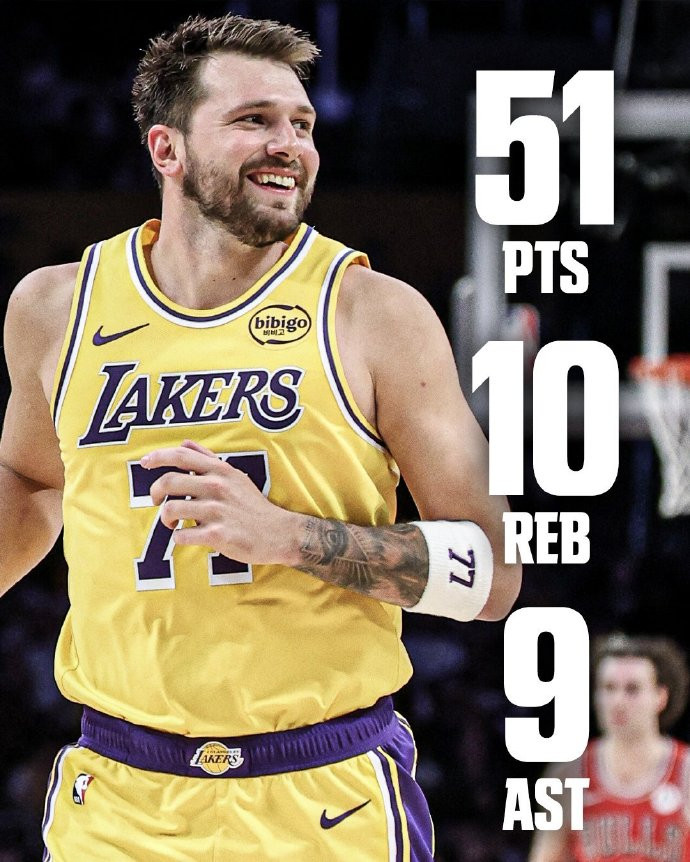 湖人今天多点开花,全队有5人得分20+,其中三人得分20+。值得一提的是,湖人首发五人组合计得到137分,替补阵容只得到5分。东契奇大发神威,出战37分钟,投篮31中17,三分14中9,罚球9中8,狂砍51分10板9助3抢断的豪华准三双数据,只差一个助攻就能拿到50+三双。单场51分刷新了东契奇本赛季以及湖人生涯单场得分纪录,单场9记三分也是湖人生涯新高。